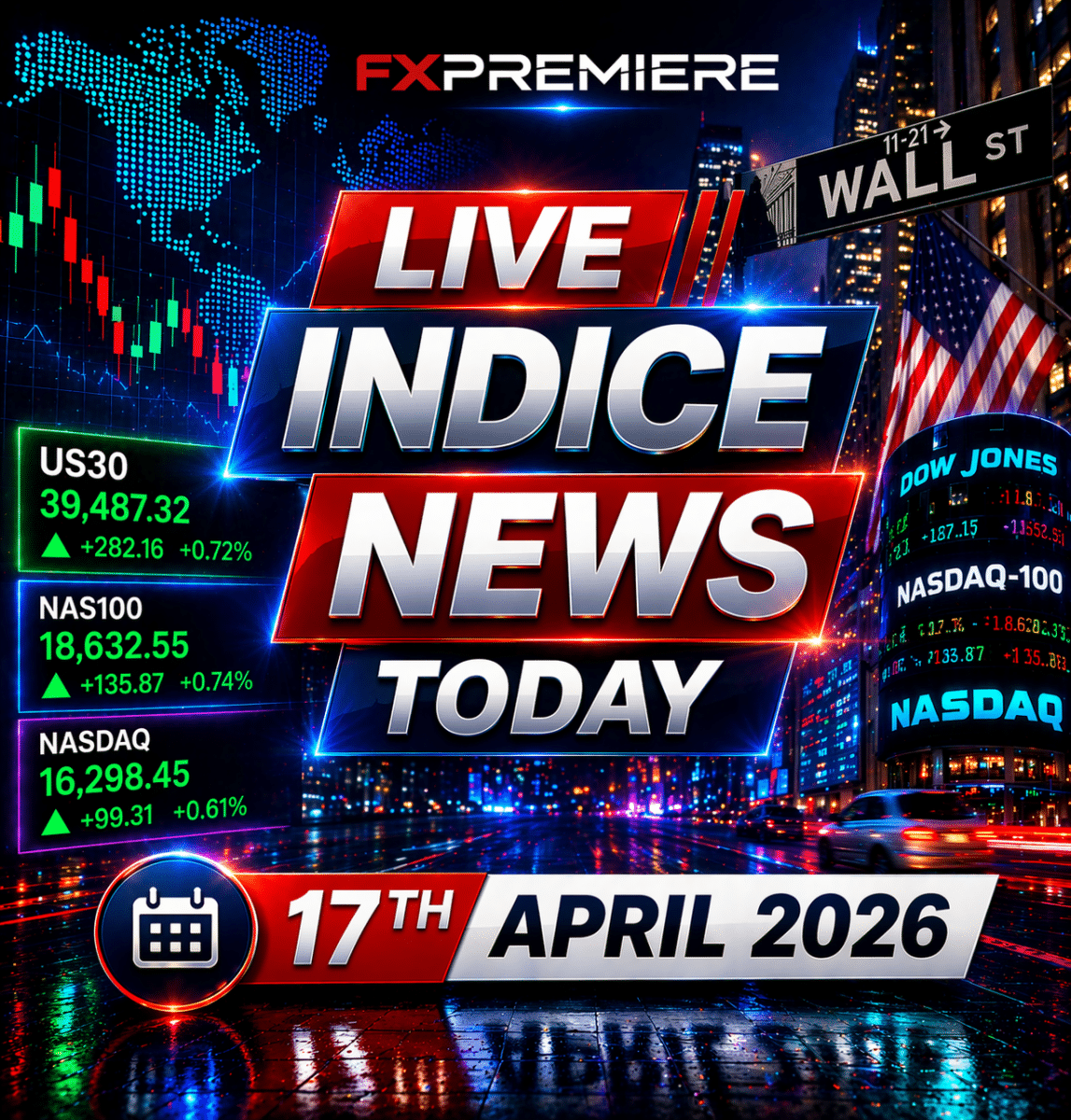 FXPremiere’s macro-driven index outlook for the trading day starting 17th April 2026.